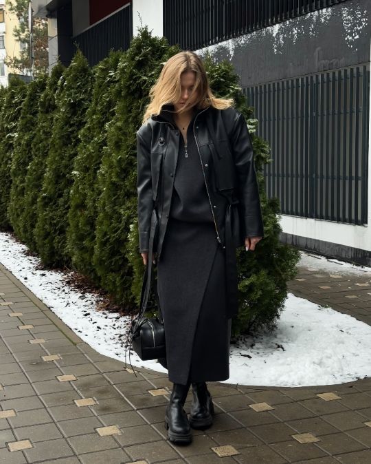 Ассиметричный крой, четкие линии, акцентные детали — это все про этот образ