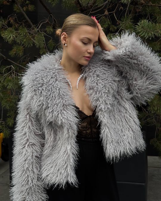 Новинка бренда — меховая манишка в шоколадом цвете.